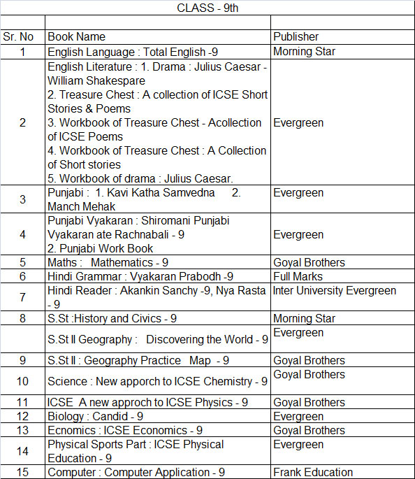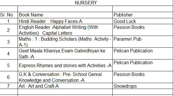 Dear parent book list is upload on the school website and also displayed on notice board. you are advised to arrange book/ stationary for your ward from anywhere, convenient to you