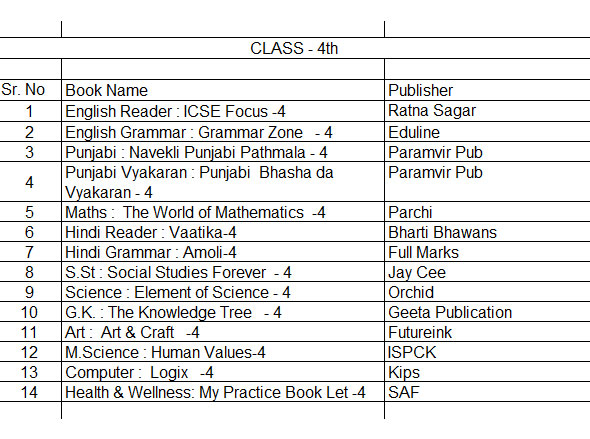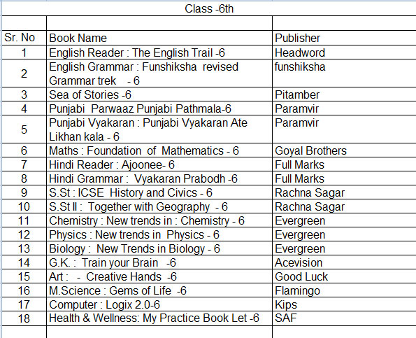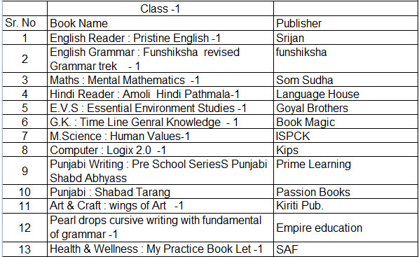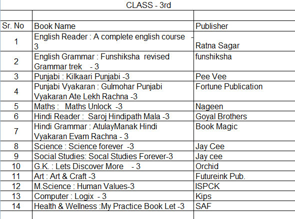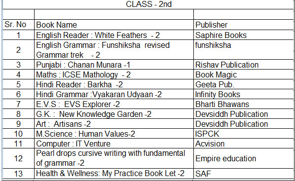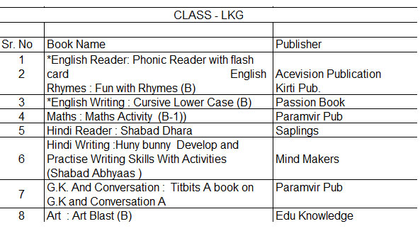 Dear parent book list is upload on the school website and also displayed on notice board. you are advised to arrange book/ stationary for your ward from anywhere, convenient to you